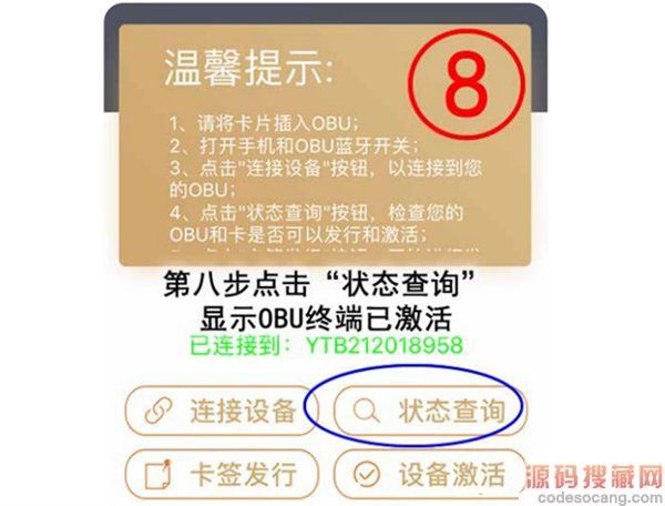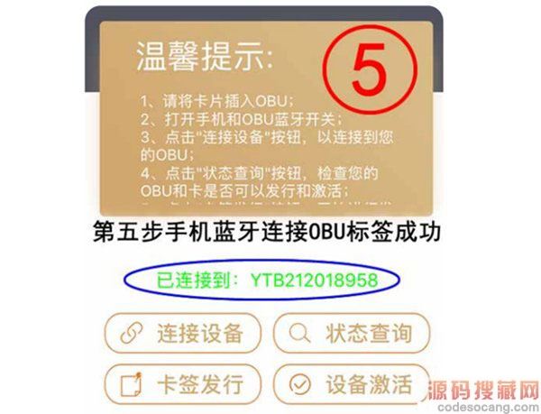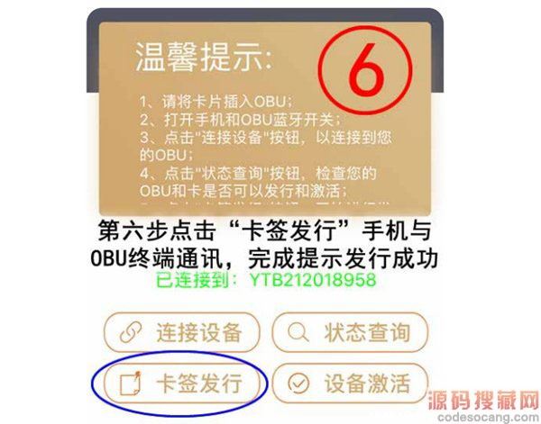 6、点击“卡签发行”手机与OBU终端通讯,完成提示发行成功;