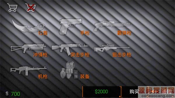 8、点击购物车这里可以购买自己喜欢的枪支武器;