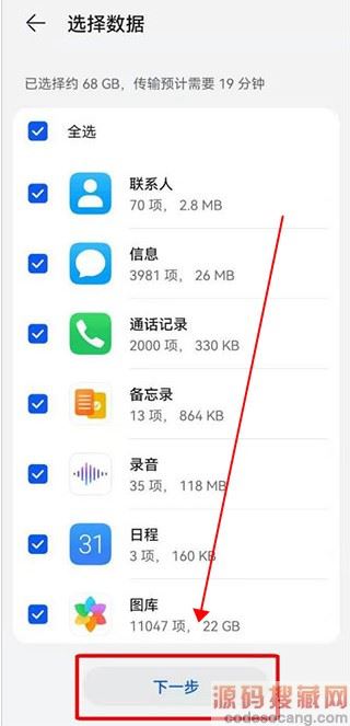 3、然后选择你需要导入的文件数据,点击传输
