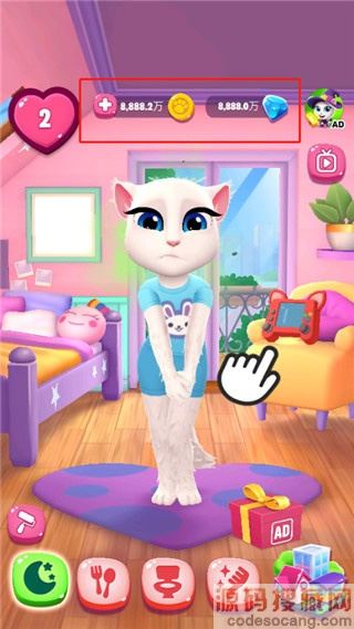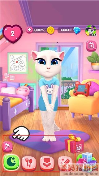 3、这时候拥有许多玩法,如哄安吉拉水晶、与其一起吃饭、帮助他上厕所、为它梳头等等。