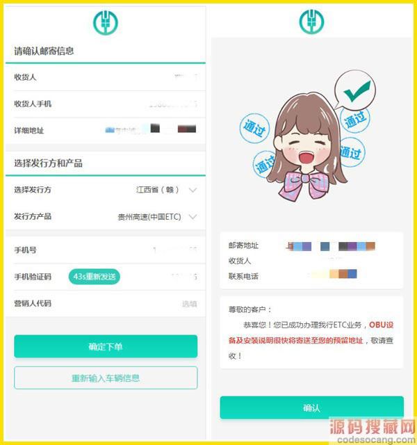 5、正确填写收件地址,过些时日就能收到obu设备。