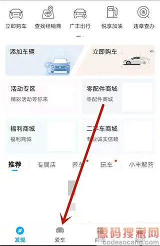 1、在丰行云APP首页中,点击左下角爱车模块。