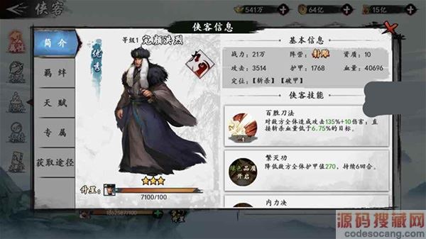此外,还有一个完颜洪烈作为优秀品质的侠客也是比较适合新手玩家的,在成吉思汗、托雷、华筝的3人阵容成型之后,再加上完颜洪烈,进一步提升护甲保护,同时可以对敌人后排进行秒杀。