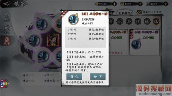 而对于其他没有内伤效果的侠客来说,内伤6件套的效果会有些鸡肋,所以可以进行混搭,使用风雷掌4件套搭配迅雷剑法两件达到输出最大化。