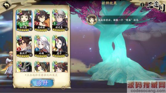 1、「神树」:会给予英灵一个祝福增益,在本次三途川中有效,少侠可以根据自身阵容选择受祝福的英灵。