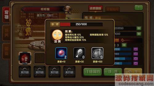 1、打开宠物界面,选择你要提升亲密度的宠物。点击右侧属性栏中,亲密度右侧的加号。
