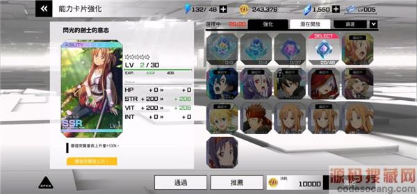 本作的抽卡除了有机会获得角色之外还会获得能力卡片,编队时每一位角色可以装备上最多3 张能力卡片,能力卡片不仅会增加角色能力值,还会赋予角色攻击力强化、属性强化等各式各样效果的能力,高稀有度的卡片会同时带有两种能力对角色战力影响很大,而能力卡片本身也能进行强化进一步增加数值。