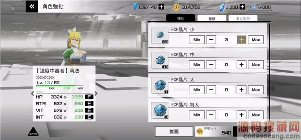 角色则有等级强化、晋级、潜在开放等管道可以提高战力,等级强化和晋级需要的素材可以在主线或是每日关卡获得,可能是制作团队考虑到游戏不能自动战斗,因此设计了可以使用SKIP 券来快速刷关帮助玩家省下时间和精力,至于潜在开放就需要抽到重复角色后才能获得角色碎片来完成,或许之后会有关卡能刷碎片也不一定。