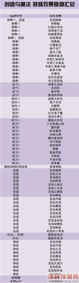 已经做好全部的附带上述buff的食物的一个汇总,一起看看吧