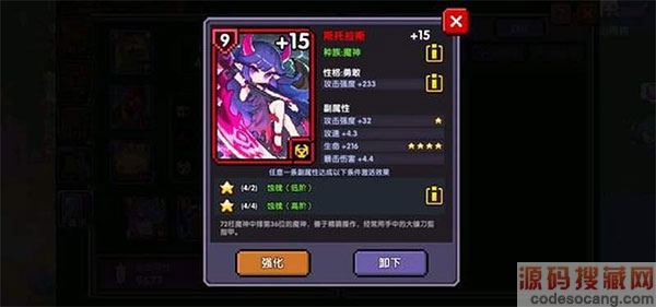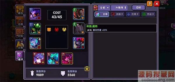 3、部位属性:每个魂卡的左上角会有颜色标记,红色的为武器,蓝色的为防具,绿色的为首饰。方便搭配种族属性,要注意的是相同的卡片不能装配。