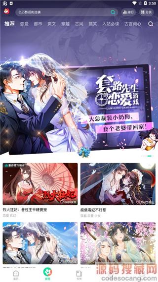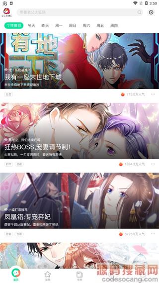 2、点击发现,有多种不同类型的漫画资源可以选择,还有排行榜和分类供用户选择;