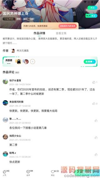4、选择一部你喜欢的漫画进入,这里可以看到漫画的简介,还有很多网友的评论;