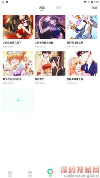 6、喜欢的漫画可以添加关注,点击历史还可以看到最近看过的漫画;
