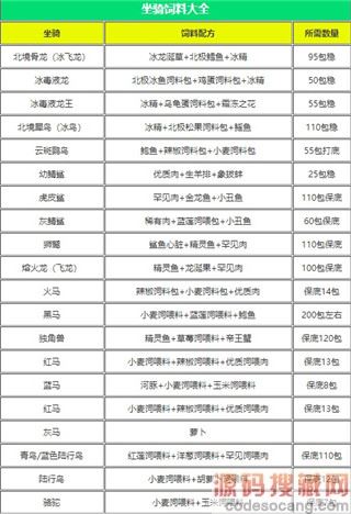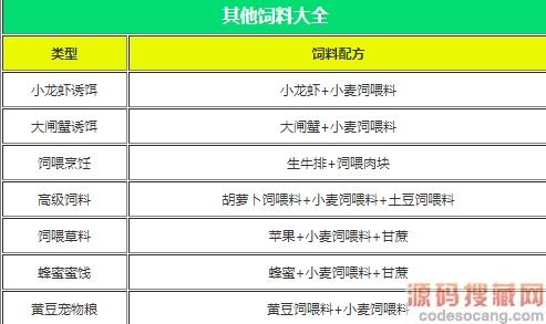 注意:①所有饲喂料都需要5个普通食材制作成1个;②所有饲喂料都可在工作台里的道具选择制作。