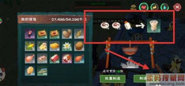 第四步,准备一个烹饪锅,并且选择,点击【烹饪】,如下图