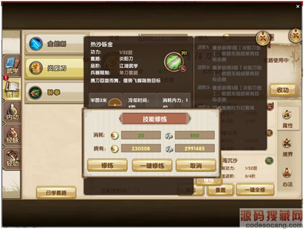 升级招式需要消耗一定的修为和碎银,升级后技能的伤害会进行提升。
