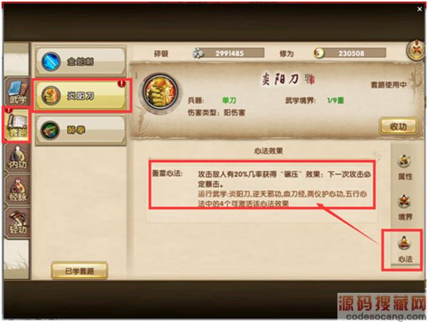 每种武学配上特定的几种内功就能激活特定的心法效果,可以通过点击套路界面