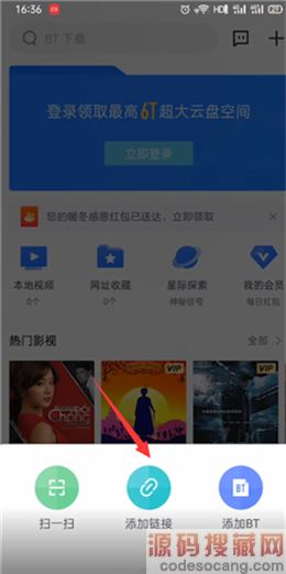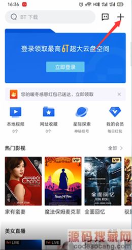 1、打开手机迅雷国际版,点击右上角的+;