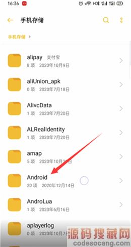 6、打开文件管理,点击Android文件;