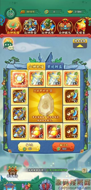 一、山神祝福消耗祝福值获得,每次消耗60点