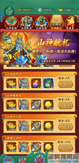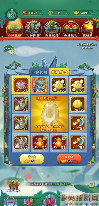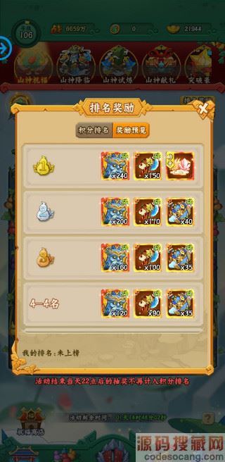 五、山神祝福排行奖励获得,排行不同奖励不同;