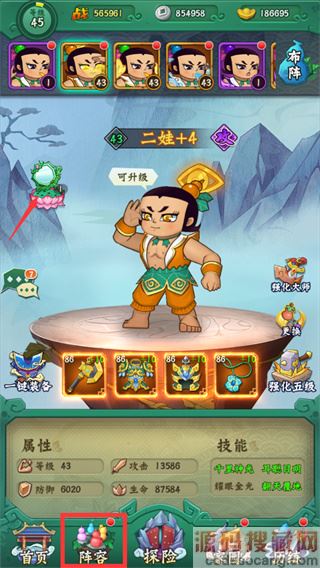 法宝系统将在45级开放,可以为葫芦娃提供大量属性,从而提升战斗力,每个葫芦娃带上法宝后都是质变,现在来看下法宝的位置吧;