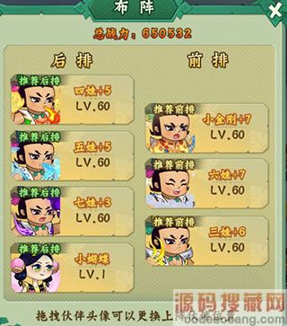 由于后期开局就有怒气,六娃放的越前,别的娃越能享受到六娃的减防效果收益,所以六娃越靠前越好,大娃这里不解释,我只是需要一个肉,四五娃和二娃放的位置顺序也随意,这里主要介绍下三娃放这里的原因,三娃的怒气技能是持续2个回合的,而怪物开场的怒气是一怒,需要攻击两次后才会满怒,怪物在满怒前前排不死的话是打不到后排的,所以到第三回合怪物满怒时候刚好到三娃攻击时候防护罩就会消失(这里我测试过,三娃的防护罩消失是从三娃起手攻击这回合计算消失的,大娃这里我是用来作为一个迂回控制碰运气用的)所以三娃的罩子就不能有100%的格挡收益,所以我个人趋向把三娃放在后排点,当然你要放第三位也是可以的,只要不放第一和第二个位置收益都是有的。