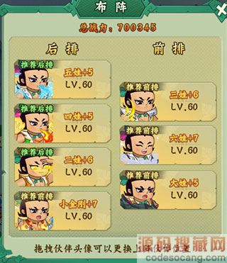 由于玩家间的pk中后期都是开局满怒的,所以三娃的盾是肯定能吃满伤害的,所以推荐把三娃放1位开局上盾,接着六娃放第二位先减防,然后通过后面4个群体攻击迅速秒掉敌方后排以求最速获取玩家之间的胜利。