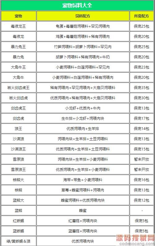 8、沙狼饲料:饲喂肉+生羊排+饲喂料土豆(它吃10包饲料)