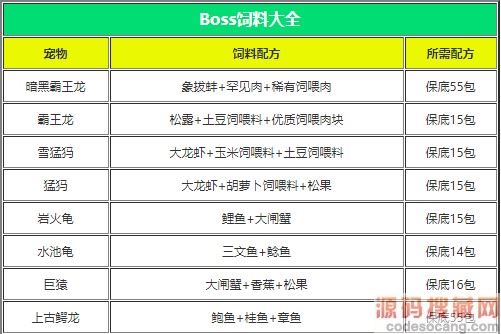 6、黑虎王饲料:罕见饲喂肉+稀有饲喂肉+饲喂料大扇贝(它吃20~25包饲料)