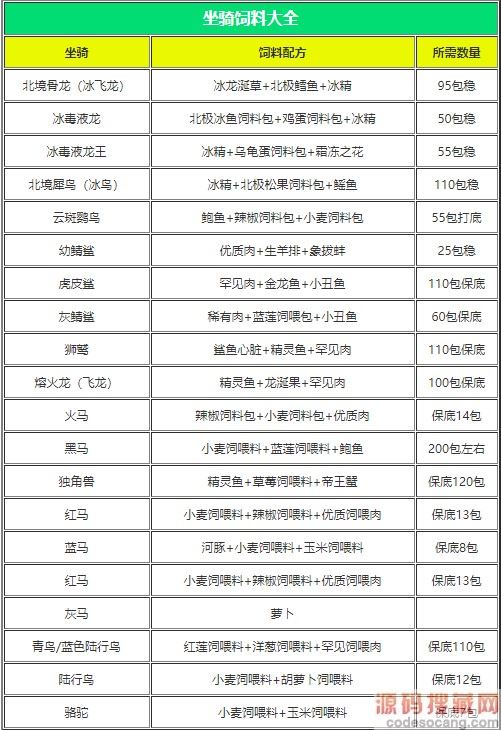 1、红马饲料:优质饲喂肉+饲喂料小麦+饲喂料辣椒(它吃10包饲料)