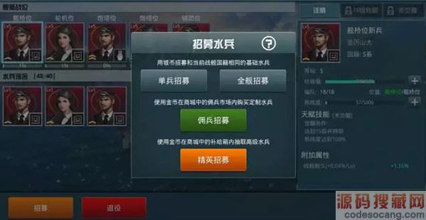 2、在进入战斗前,大家不要忘记之前新手教学中的引导,要给战舰先配备水兵与配件,这样可以更好的来提升战舰的性能,只需要花费一定的银币即可选择全舰招募水兵,水兵中有高品质的话就用高品质。