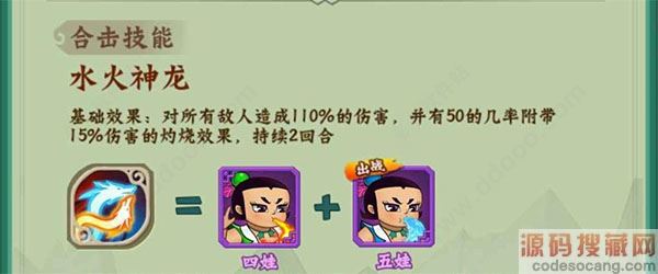 二娃拥有不俗的单体攻击能力,同时还可以激活大娃的合击技能,适合后排的4号位进行一波补刀收割人头。
