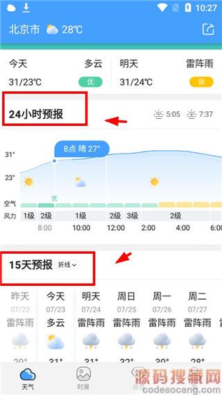 3、屏幕下拉,即可查看当天24小时,以为未来15天的天气预报信息