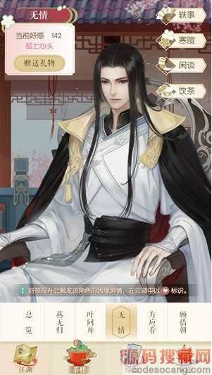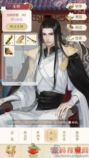 【寒暄】【闲谈】【饮茶】功能则可以与角色进行对应的互动。(需要好感度达到一定要求后才可以解锁)
