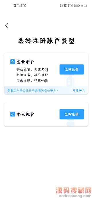 2、用户还可以选择注册账号的类型,有企业账户和个人账户两种选择。