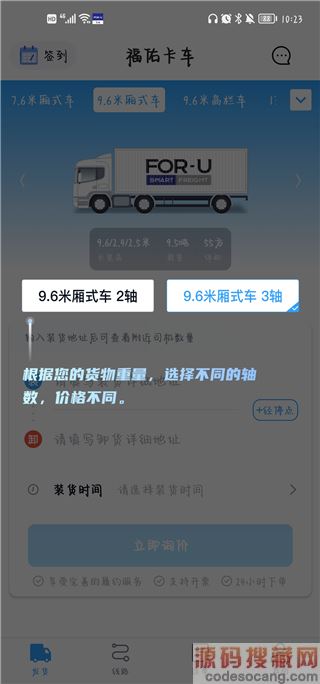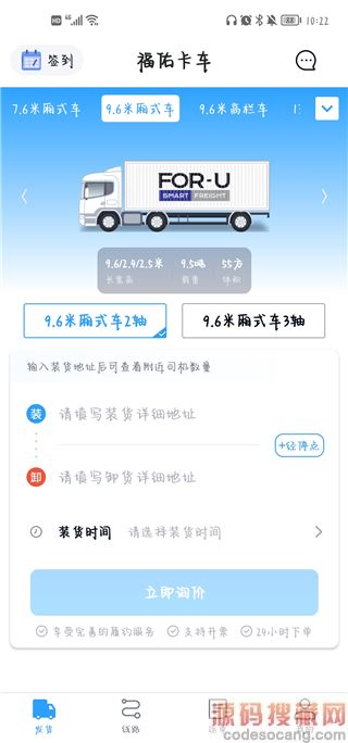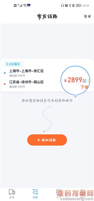 6、点击进入路线,用户可以添加自己常用路线,这样就可以获取实时报价啦。