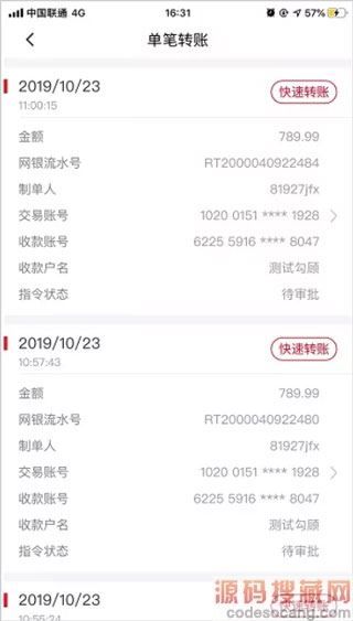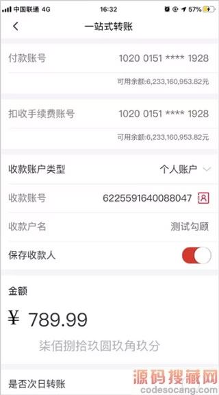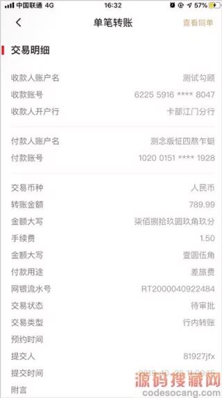 3、进入一站式转账信息录入页面,页面返显所选交易的转账内容。