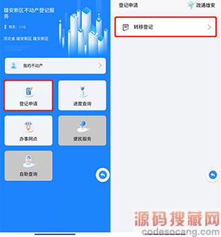 1、首先我们登录政通雄安app,进去后有首页点击不动产登记服务