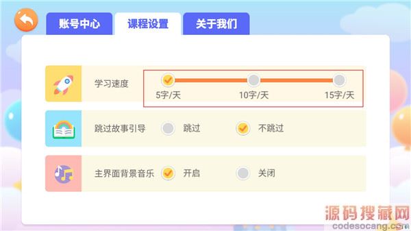4、家长还可以在主页中右上角【设置】中调整每日的学习速度。