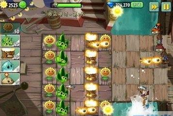 这个关卡的关键在于不断补充向日葵和植物,在大波僵尸来袭的时候使用能量豆,还有记得阻止海盗僵尸博士破坏我们的植物阵容。