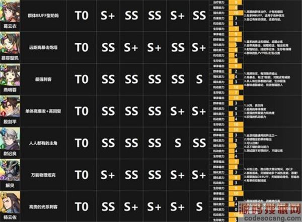 燕明蓉,新角色刺客,签到任务白送。极高的暴击配合暴击阵可以刀刀暴击。无视护卫高机动,除了不会飞缺点不大。御风切可以后排拿宝箱比较方便。近战还可以考虑皇甫,皇甫具体强度有待测试。