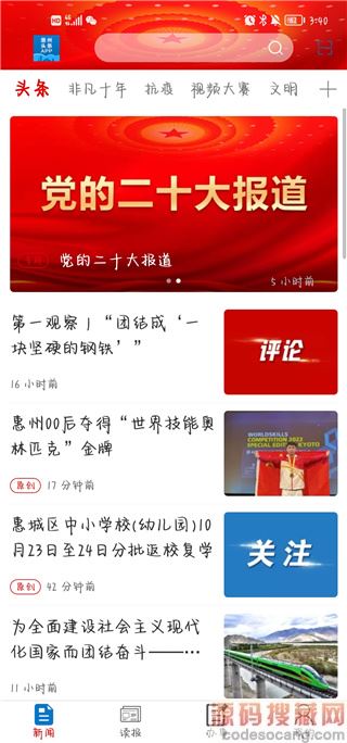 1、打开软件进入首页,一进入就是头条页面,这里有最新的惠州资讯;