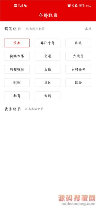 2、点击右上角的加号,可以编辑首页的栏目频道;