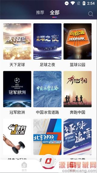 2、点击直播推荐,即可观看赛事直播