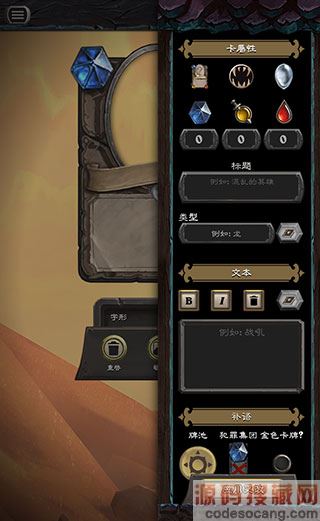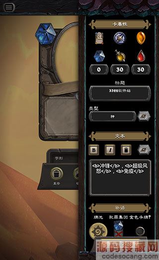 2、编辑菜单内可以编辑卡牌的各项参数,如职业、稀有度、身材、效果等。