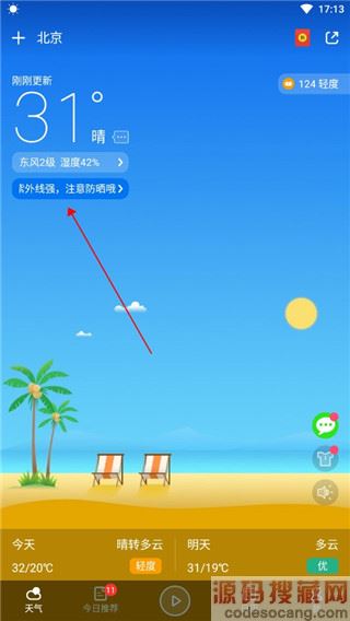 1、下载好app后,进入使用,在主页中就可以了解到天气温度和出行建议。