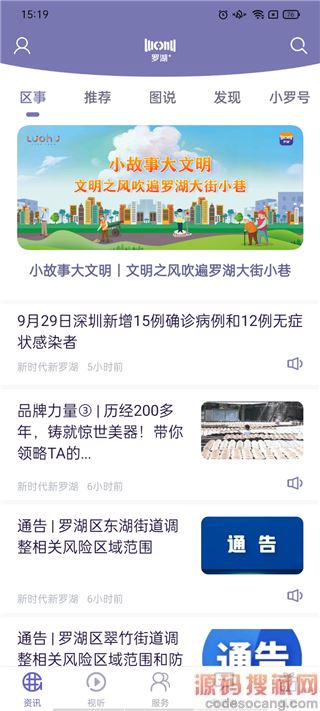 2、其中资讯中,拥有着罗湖区事、推荐、图说、发现、小罗号功能;