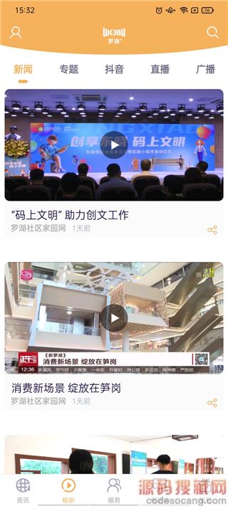 3、在视听中,拥有着罗湖新闻、专题、抖音、直播、广播;