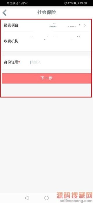 4、进去缴纳社保界面,选择收费项目和收费单位,输入身份证号,进行交社保就完成了